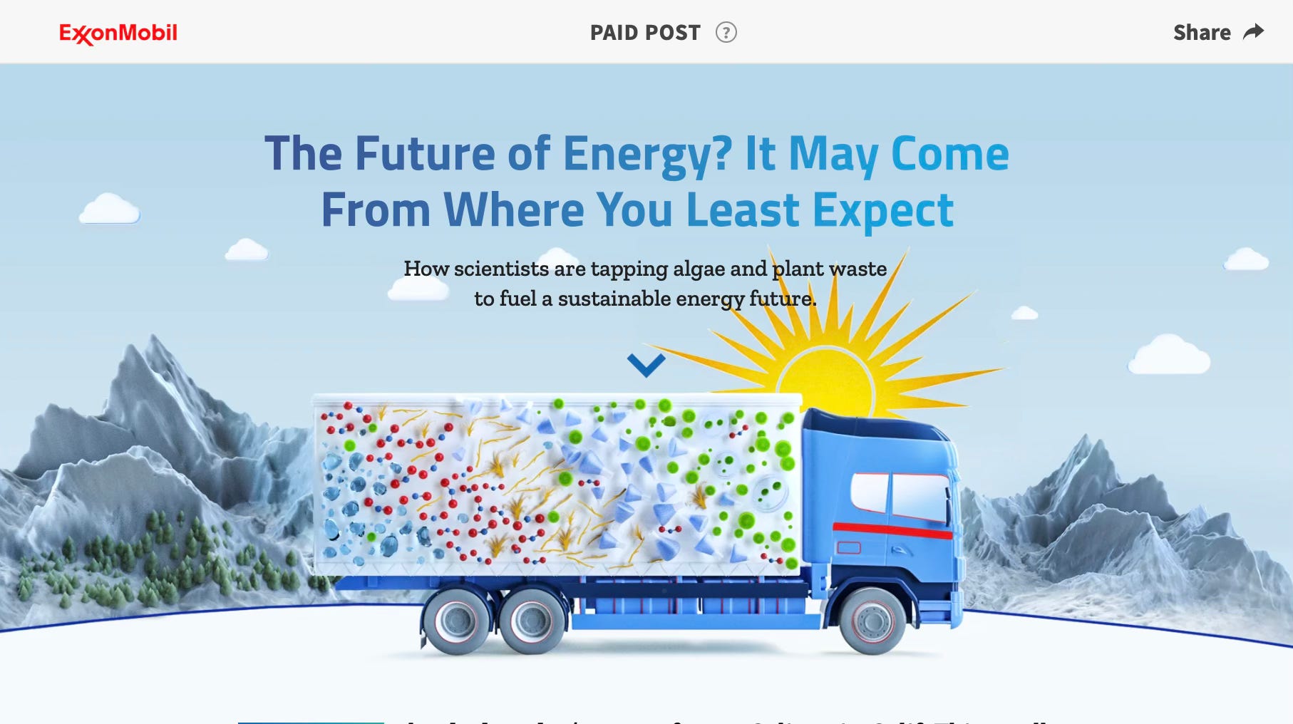 Another native advertisement for Exxon created by the New York Times’ T Brand studio as part of its “Unexpected Energy” campaign touts the company’s research into algae biofuels and still runs on their website — even though Exxon dropped its algae research years ago. In an award application obtained during a congressional investigation, media and ad agency Universal McCann wrote that it worked with the T Brand Studio to replicate the “Timesian” voice in order to “mirro[r] the award-winning journalism of the world-renowned publication.” The campaign set out to combat “a volatile news cycle [that] often owns the share of voice, not always providing an accurate depiction of ExxonMobil.”